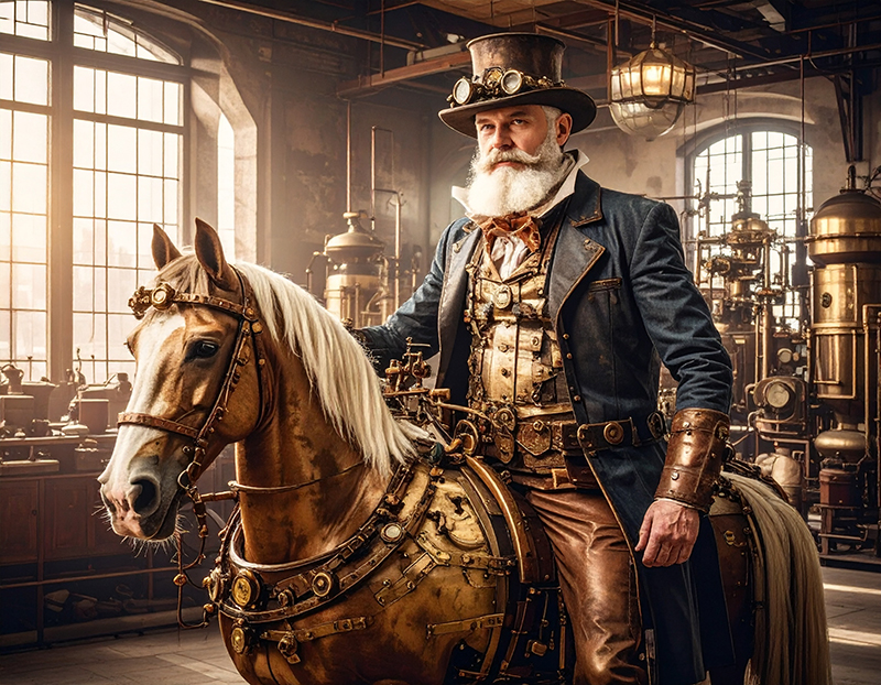 Concept art for a restaurant with a steampunk theme. Costuming and posters.